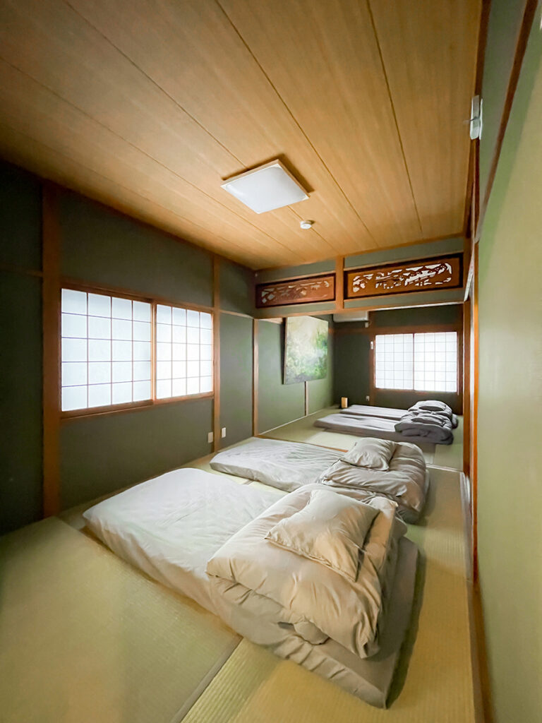 中でも驚いたのが、妻とのやり取りの中で塗装職人さんが仕上げてくれた遊び心あふれるシャッター。職人さんの心意気が、シャッターをこの民泊のシンボルにしてくれたと感謝しています。