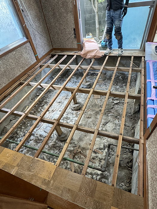 居間の床の解体がスタートします