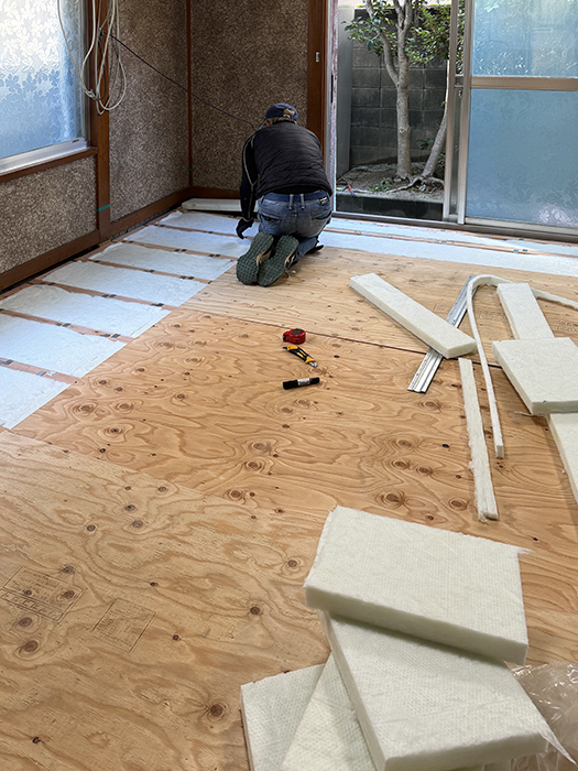 断熱パネルを施工し、ボードを敷設