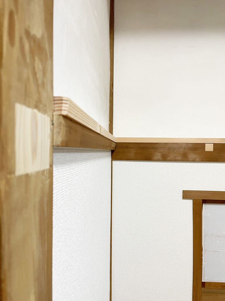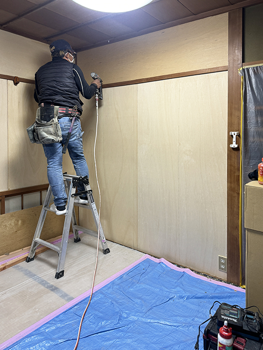 クロスを綺麗に貼れるよう、傷みの見られた壁には新しく下地ボードを施工